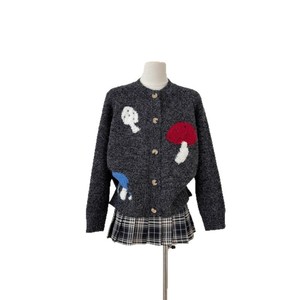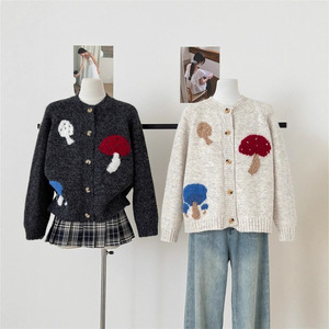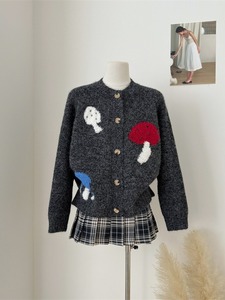 秋冬新款可爱减龄卡通蘑菇软糯毛衣外套女设计感宽松长袖针织开衫