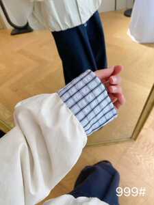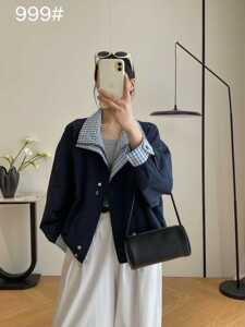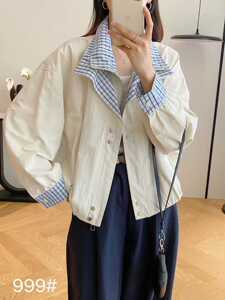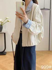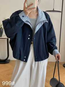 999立领格子拼接假两件短款外套女新款韩版宽松休闲百搭夹克上衣