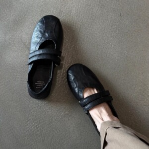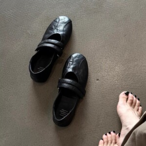 全羊皮~2025新款法式小众软底气质圆头魔术贴双排扣带玛丽珍鞋女