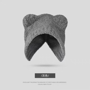 秋冬季帽子女毛绒包头帽可爱保暖显脸小针织毛线帽大头围护耳帽子