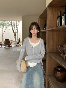 假两件针织衫女韩版设计感百搭通勤简约拼色长袖T恤上衣早秋新款