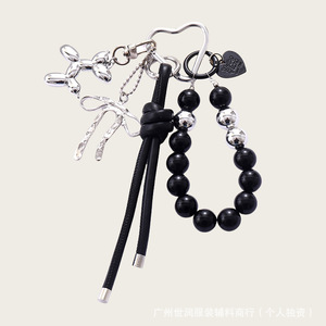 皮绳+亚克力串珠挂件 黑色