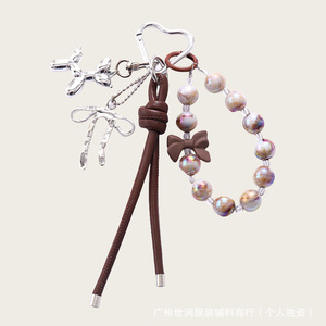 miu系新款亚克力鸟巢串珠包包装饰挂件精致创意PU皮绳蝴蝶结挂饰