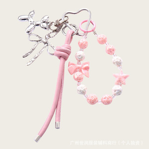 皮绳+亚克力串珠挂件 粉色