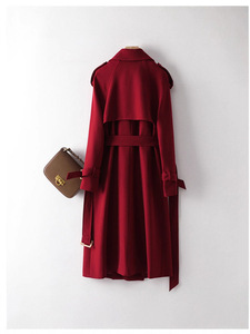 酒红色风衣女款2025年新款女春装过膝长款西装领外套垂感名媛时尚