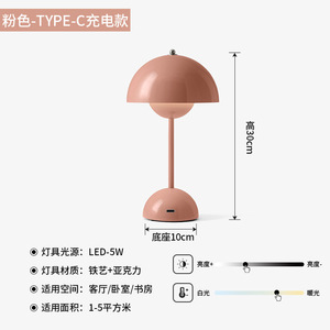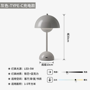 丹麦复古花苞台灯北欧设计师书房氛围无线充电卧室床头小台灯跨境