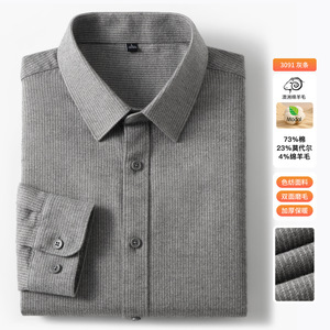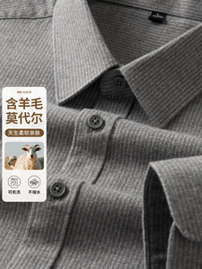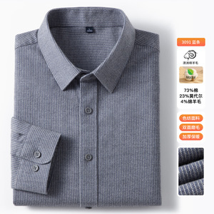 【羊毛+棉】2025秋冬季新款竖条纹长袖衬衫男衬衣休闲加厚寸衫男