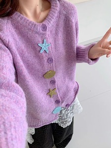 韩系软糯重工纽扣开衫针织衫2025新款秋冬宽松慵懒风毛衣女外套潮