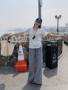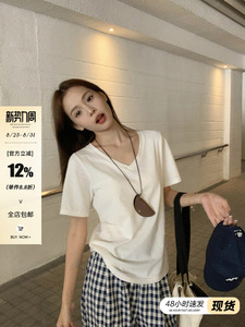 宋正恩V领白色慵懒感宽松短袖t恤女夏季新款正肩时尚百搭体恤上衣