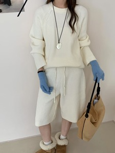 2025秋冬新款毛衣套头针织短裤两件套韩版宽松休闲百搭毛衣套装女
