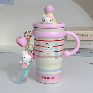 粉色-娃娃帽保温杯+粉KT公仔头+卡通挂件