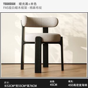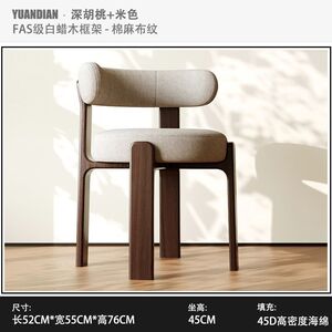 北欧风橡木实木软包餐椅2025新款整装家具化妆中古风餐椅家用意式
