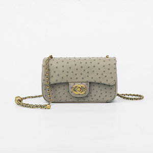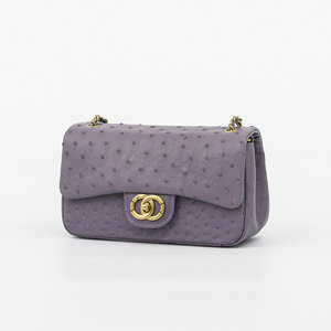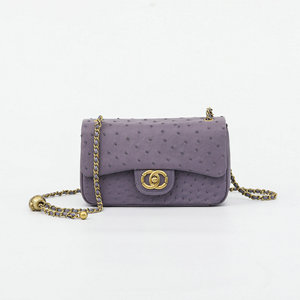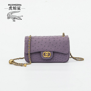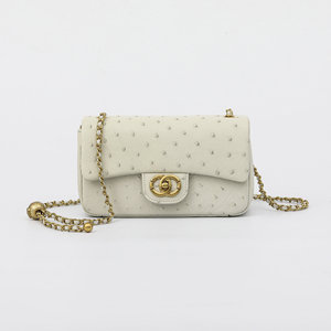 工厂批发20cm鸵鸟皮女包真皮小金球链条包女士单肩斜挎包小香风包
