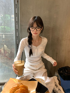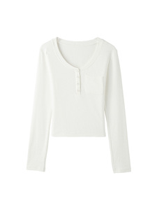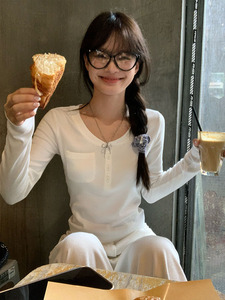 宋正恩白色口袋设计感内搭打底衫女秋季修身百搭辣妹长袖t恤上衣