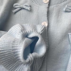 韩系软糯立体蝴蝶结圆领针织衫女春秋新款学院风百搭毛衣开衫外套