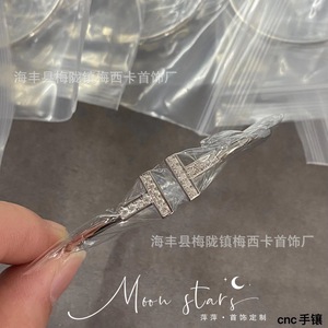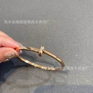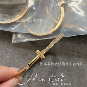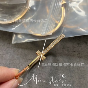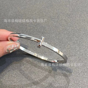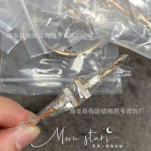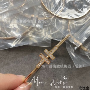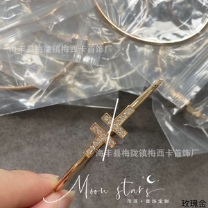 T家高版本双T手镯铜合金玫瑰金白贝母镶钻时尚百搭开口手环爆款