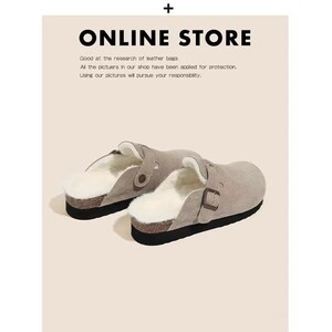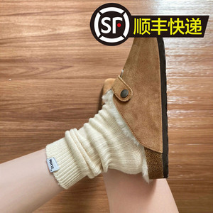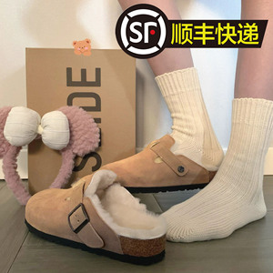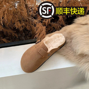羊毛版~真皮毛毛鞋勃肯鞋女秋冬一脚蹬加绒厚底博肯鞋包头半拖鞋