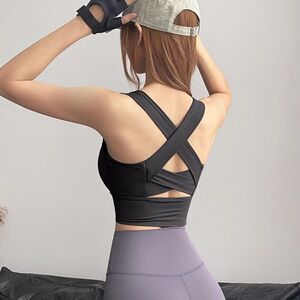 健身带胸垫交叉美背运动内衣防震聚拢跑步背心外穿瑜伽文胸上衣