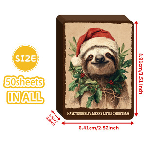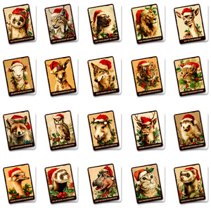 50张跨境新款圣诞节动物主题文字卡片欧美复古风儿童节日礼物贺卡