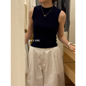 新款半高领螺纹显瘦磨毛无袖背心吊带女外穿遮副乳打底上衣背心