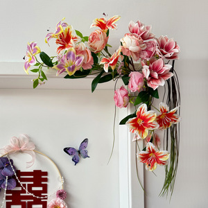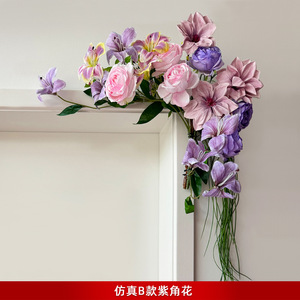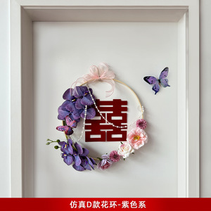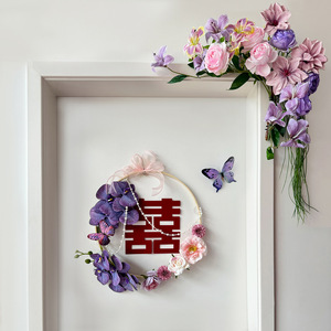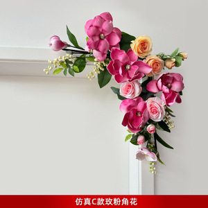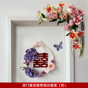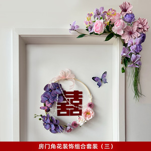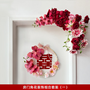 婚房布置挂饰男方卧室门上仿真花结婚女方房门角装饰用仿真花布置