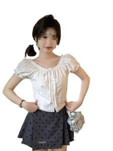 小个子短款新款蕾丝花边泡泡衬衫夏季修身短袖别致衬衣甜美上衣