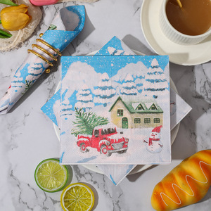 圣诞纸巾派对方形餐巾纸酒店节日家用高级印花卫生纸巾圣诞餐巾纸