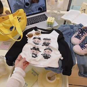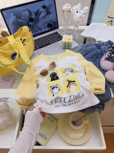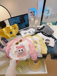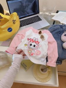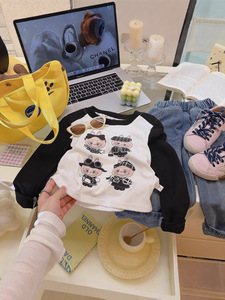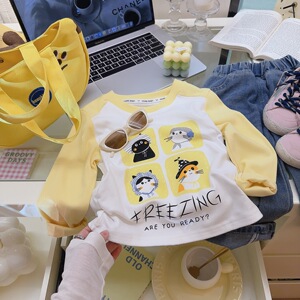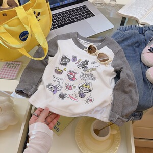 新款女宝宝上衣长袖t恤卡通印花韩系秋季中大童上衣德绒女童打底