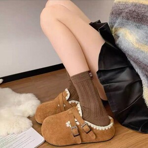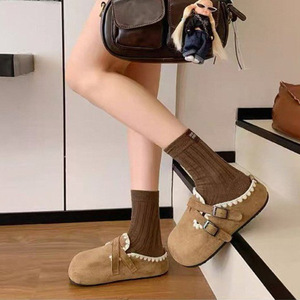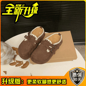 复古内增高皮带扣女生厚底勃肯拖鞋秋冬舒适百搭一脚蹬包头半拖鞋