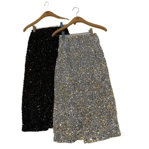 高级感银色亮片半身裙女春秋高腰遮胯显瘦包臀裙设计感开叉中长裙