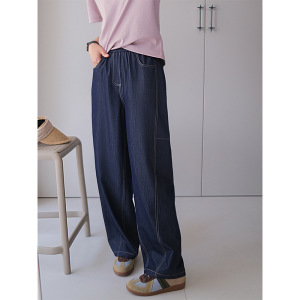 预售仿牛仔香蕉裤 慵懒风柔软垂感分割线弯刀休闲裤子女夏