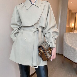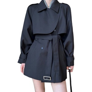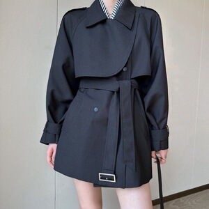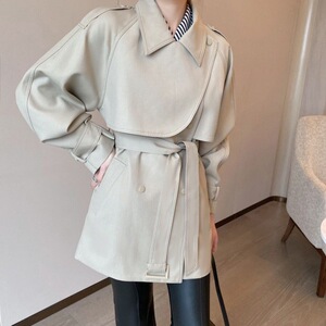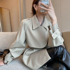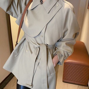 外贸短款纯色2025春秋新款复古斗篷风衣外套女小众小个子大衣