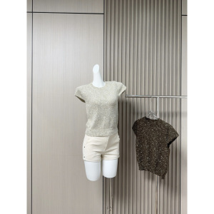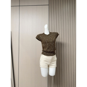 韩系复古简约气质时尚圆领短袖针织衫休闲百搭慵懒风修身显瘦上衣