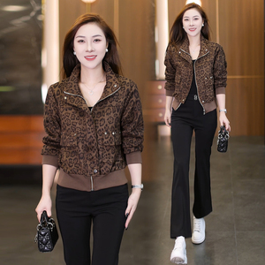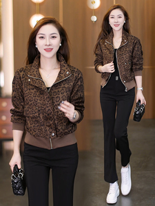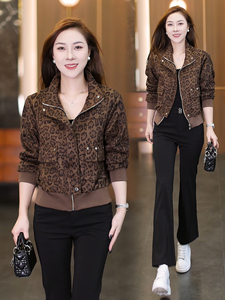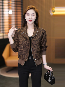 时尚亚马逊豹纹短外套女2025秋季新款时髦洋气宽松小个子夹克上衣