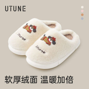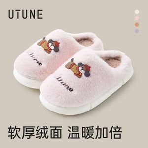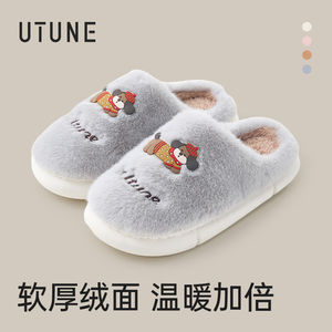 优调可爱狗狗棉拖鞋女秋冬季情侣居家毛绒加绒保暖防滑卡通包头拖