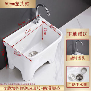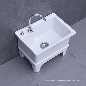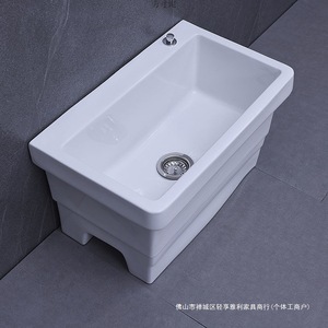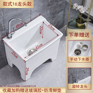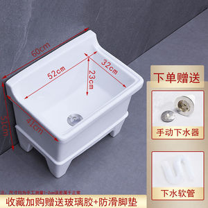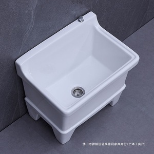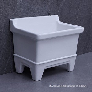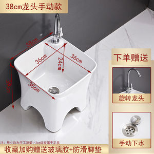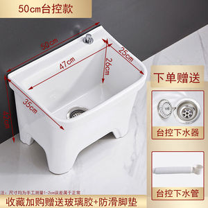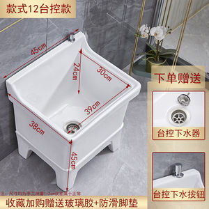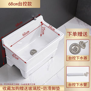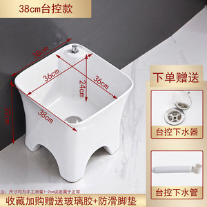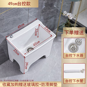 陶瓷拖把池阳台墩布池大号方形长拖把洗宽拖布盆台控自动下水器厂