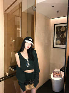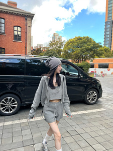 区区欧阳连帽针织开衫女秋季长袖宽松美式复古慵懒风毛衣外套上衣