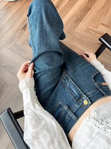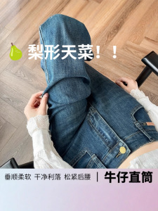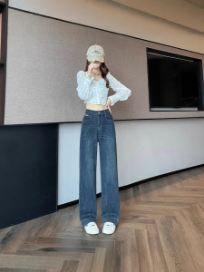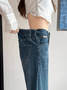 复古蓝阔腿牛仔裤女秋季2025年新款高腰显瘦松紧腰弹力窄版直筒裤