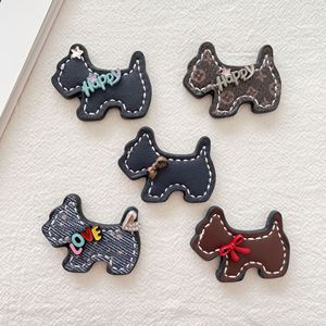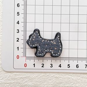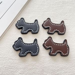 新款可爱复古皮质爆款小狗缝明线PU皮革发卡配件diy服饰包包辅料