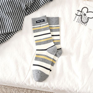 袜子女秋冬纯棉中筒袜布标潮条纹女袜吸汗防臭抗起球堆堆袜长袜子