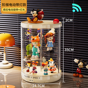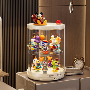 旋转盲盒收纳展示架防尘透明labubu搪胶公仔玩偶手办盲盒展示柜子