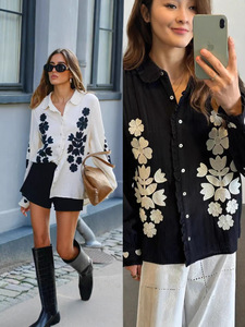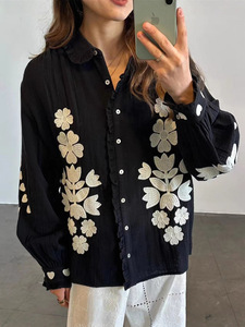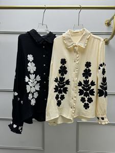 法式小众25年秋冬新款复古花朵刺绣娃娃领长袖宽松休闲衬衫上衣女