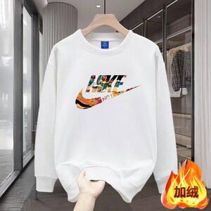 圆领卫衣男款秋冬季新款加绒加厚美式潮牌外套宽松长袖套头上衣服