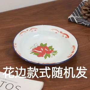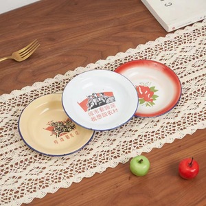 怀旧搪瓷盘子老式语录铁菜碟圆形小吃碟餐厅市井地摊火锅饭店盘子