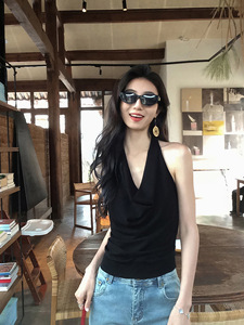 MULVAN 气质姐姐 荡领挂脖上衣女设计感小众露背修身吊带背心外穿