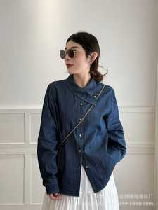 琪镌绘制法式设计感正肩水洗牛仔衬衫女秋季新款叠穿长袖上衣1806