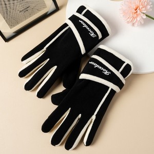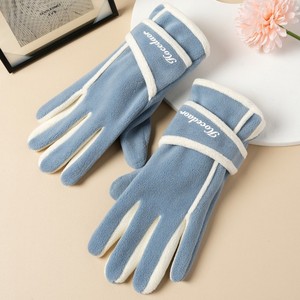 秋冬加绒手套女户外骑行保暖手套翻指触屏手套拼色不撞款触屏手套