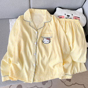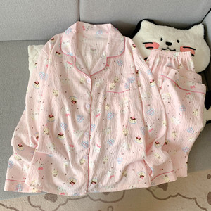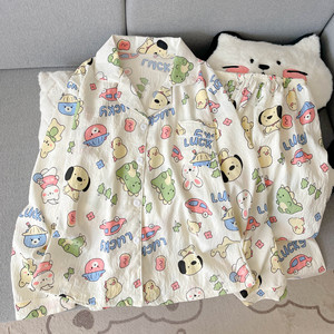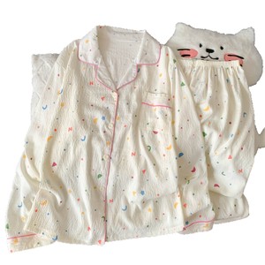 东南亚跨境云朵棉睡衣女士春秋季长袖长裤印花翻领可爱家居服套装