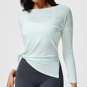 跨境新款运动罩衫女宽松轻薄网纱长袖普拉提健身t恤女瑜伽服上衣