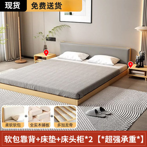 日式实木榻榻米床实木床落地无缝民宿双人床加厚卧室塌塌米落地床